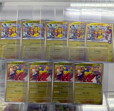 本鴨子還有投資不同的TCG,這次的貸款用來嘗試之前因現金流不足未能做到的項目。圖片中是九張比卡超的卡牌,已交給代送PSA鑑定的遊戲卡店舖。